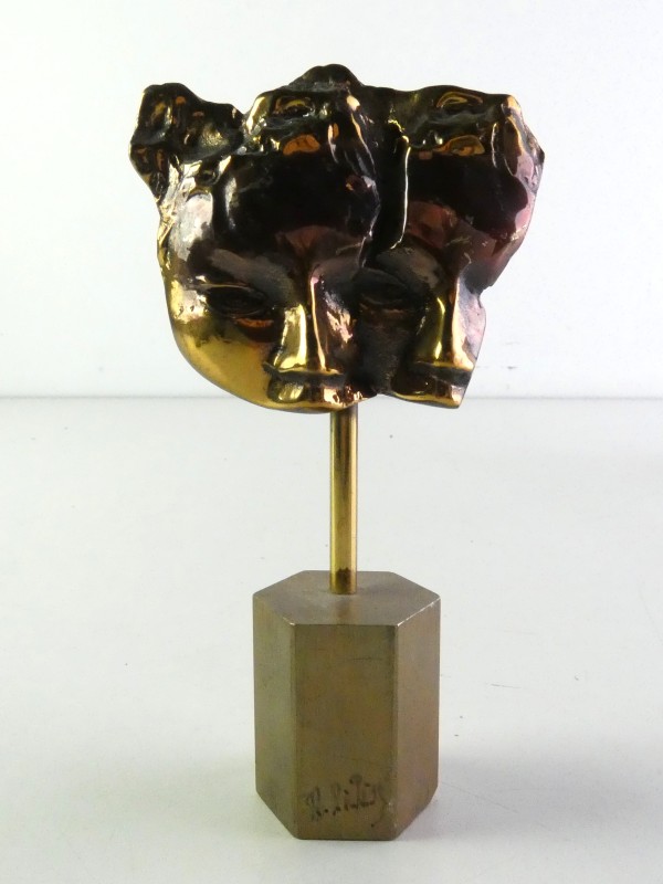 Afm: lengte 6.5 cm; breedte 6.5 cm; hoogte 12 cm. - Abstract beeldje dat twee samengesmolten gezichten voorstelt,