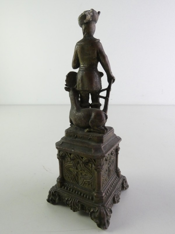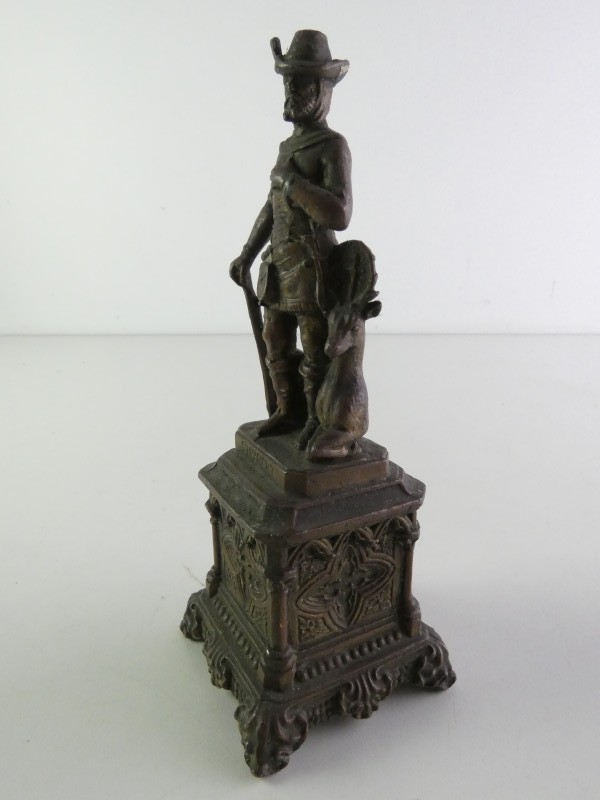 Afm: diameter van de voet 8 cm; hoogte 16 cm. - Beeldje van Sint-Hubertus, de patroonheilige van de jagers.