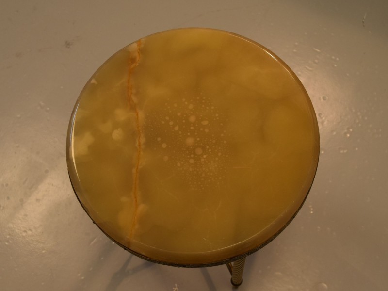 Vintage ronde bijzettafel met onyx marmeren tafelblad en messing poten