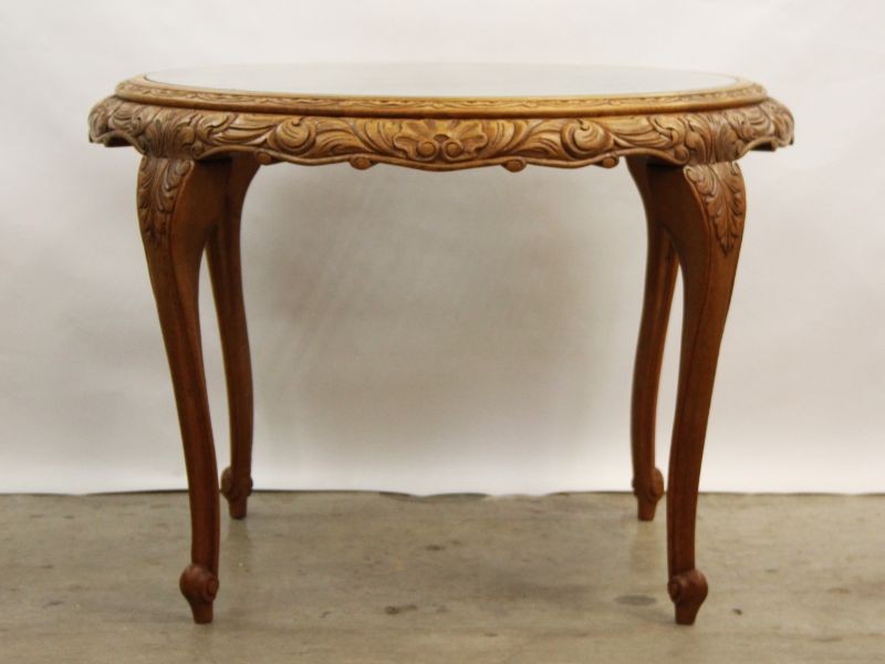 Mooie, ronde tafel met even elegante poten als de nestingtafels (veilingnummer 97676, gisteren verschenen), deze kunnen/willen bij elkaar horen.