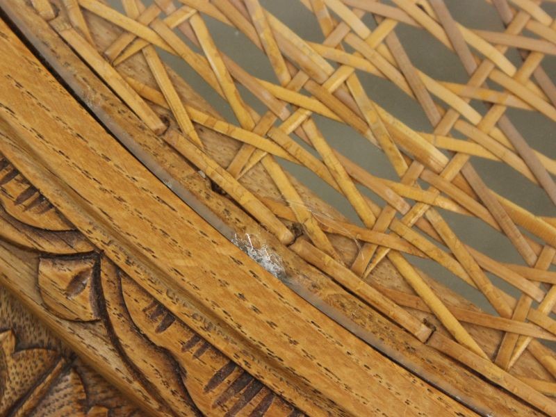 De webbing (riet) is helemaal in orde, het glas heeft een kleine schilfer aan de zijkant (moeilijk zichtbaar).