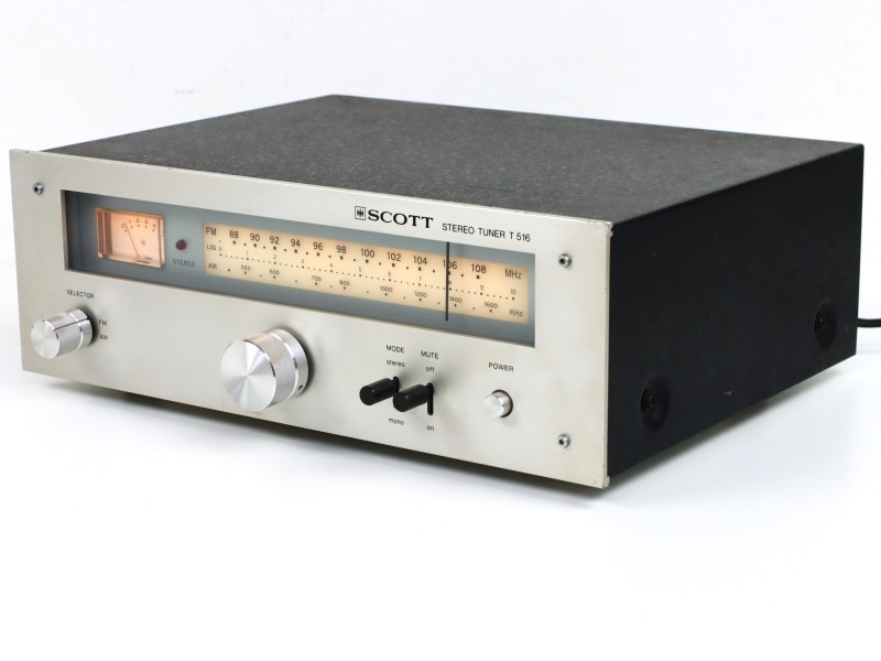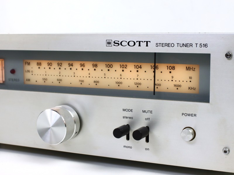 De Scott Tuner T516 werd geproduceerd van 1977 tot 1979 en is een representatief model uit de 'Great American Sound'-serie van Scott. Dit model is ontworpen om te passen bij de versterkers A-406 en A-416 en heeft een strak ontwerp met een geborstelde aluminium voorzijde en een metalen behuizing met een subtiele metallic afwerking.