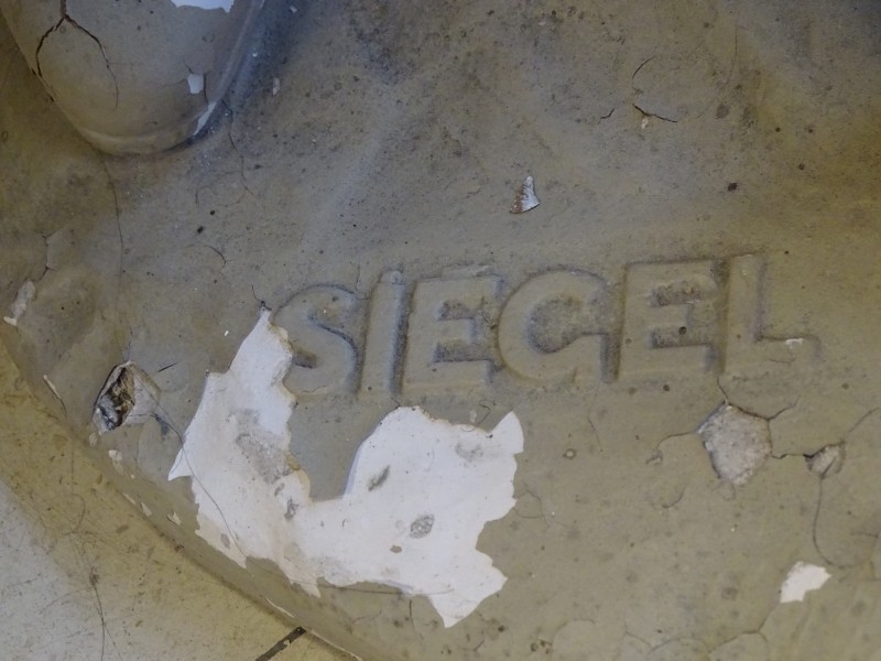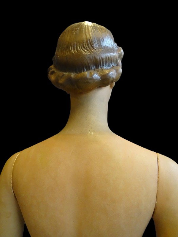 Deze Franse etalagepop van het merk Siegeln met zijn originele merk op de voet, werd gebruikt in de mooiste Franse lingeriewinkels. Het dateert uit de jaren 40 en is gemaakt van gips.