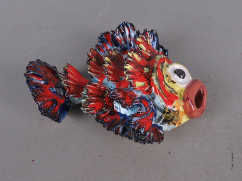 Keramisch beeld van een vis om aan de muur te hangen. Handgemaakt in Italië.