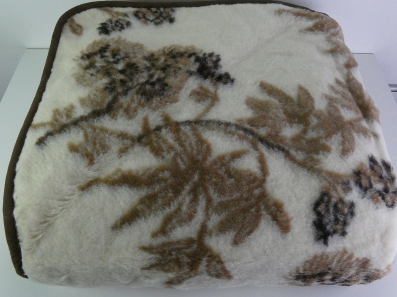 Warme, zachte merinowollen deken met klassiek bruin bladmotief.