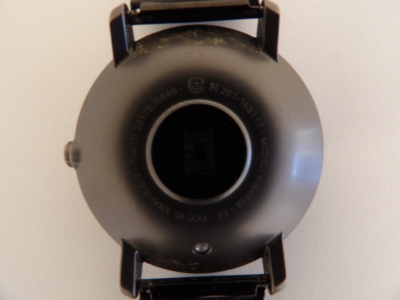Het horloge heeft analoge wijzers voor de tijd en een klein monochroom digitaal display voor meldingen en gezondheidsgegevens.