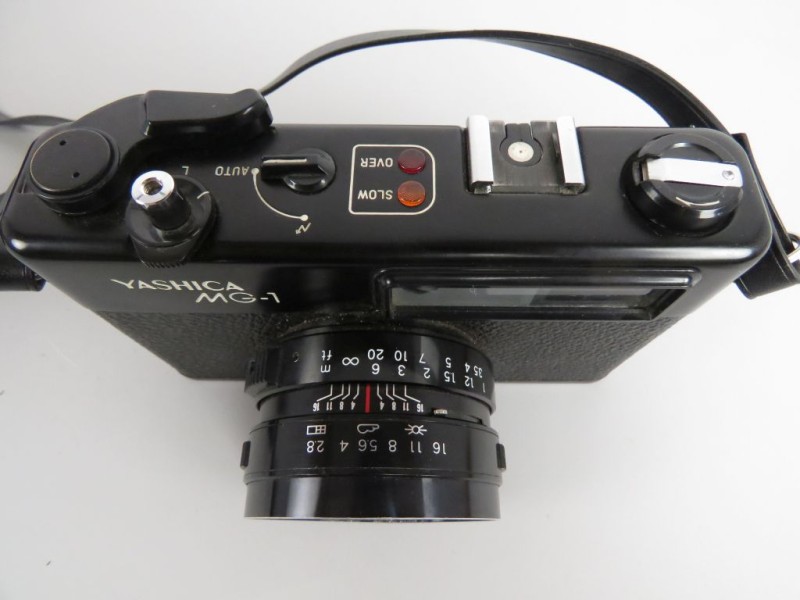 Merk & Model: Yashica MG-1 (duidelijk zichtbaar op de boven- en voorkant van de camera).