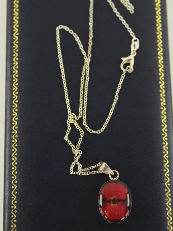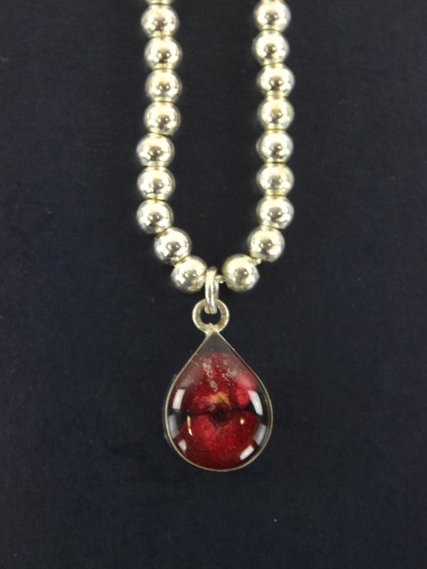 Charmante zilveren ketting & armband – 925 sterling zilver – met ingelegde echte klaproosbloem