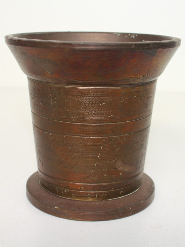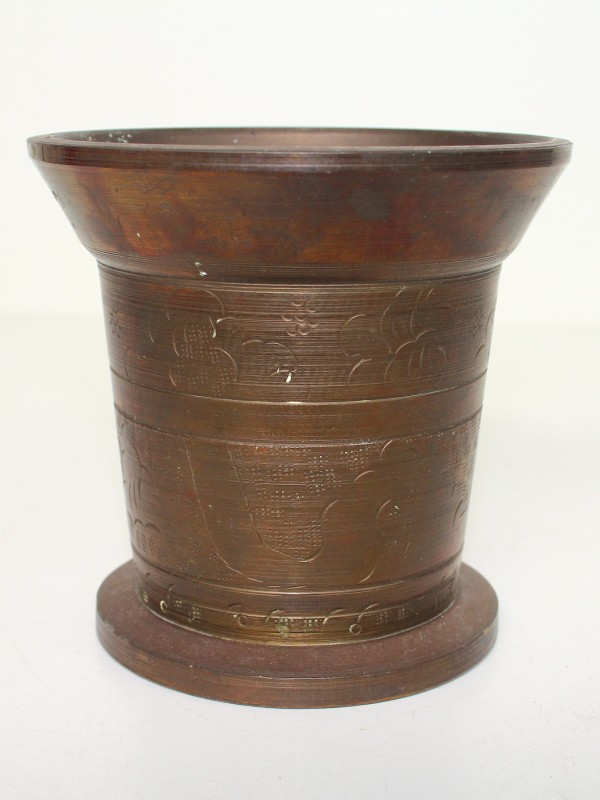Vijzel en stamper uit zwaar brons.